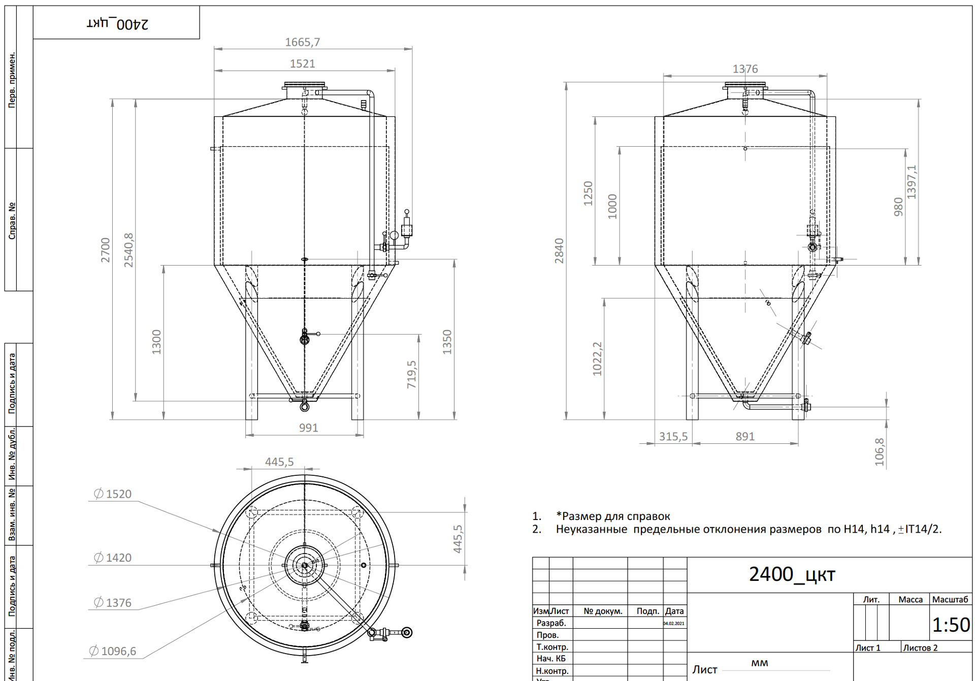 2. Кран дисковый 1,5" на сброс дрожжей. |